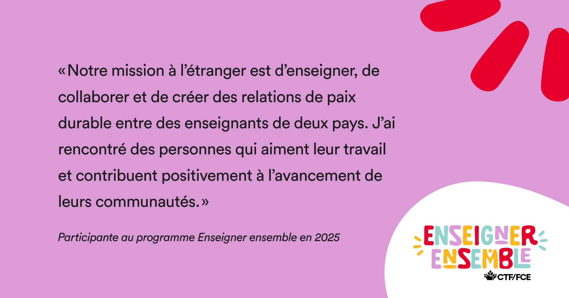 Participer au programme Enseigner ensemble en tant que membre d’une équipe canadienne vous intéresse?